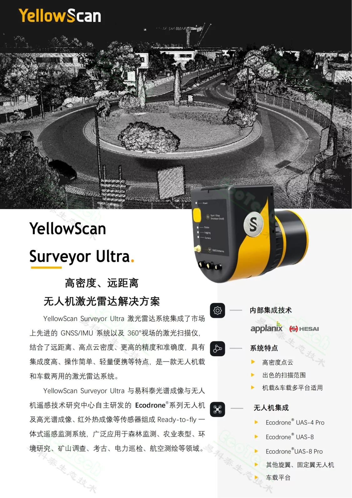 Yellowscan Surveyor Ultra機(jī)載車載雙用Lidar系統(tǒng)