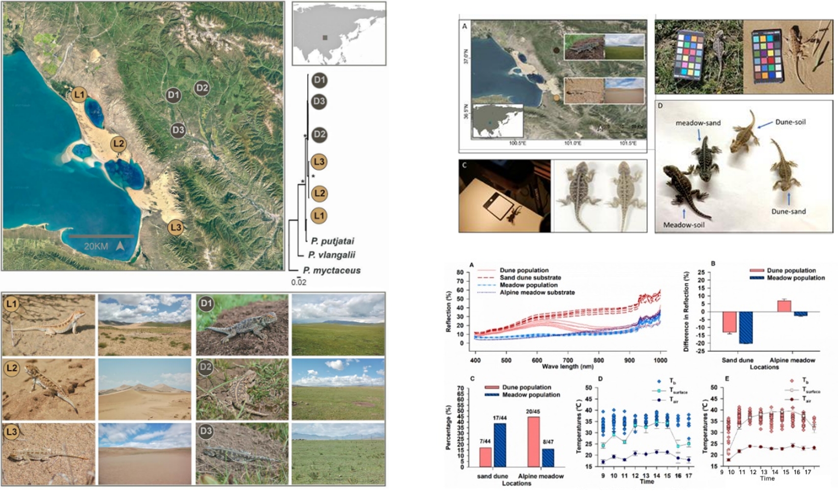 北京易科泰與中科院動物所合作,利用Specim IQ高光譜成像儀及ThermoRGB成像系統(tǒng),用于蜥蜴背部顏色分化對偽裝和體溫調(diào)節(jié)的影響研究,相關(guān)研究成果以Genetically encoded lizard color divergence for camouflage and thermoregulation為題發(fā)表在《Molecular Biology and Evolution》上。(2024)