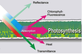 太陽(yáng)輻射照射到植物葉片上,其中的藍(lán)色波段和紅色波段大部分被葉片吸收進(jìn)行光合作用,另一部分(包括綠色波段、紅外波段等)以反射光的形式返回到大氣中,少量以熒光的形式發(fā)射到大氣中,還有部分則以熱的形式耗散。通過(guò)對(duì)葉片反射光成像測(cè)量分析(RGB彩色成像、多光譜或高光譜成像等)、多光譜熒光成像測(cè)量分析及葉片溫度測(cè)量分析(紅外熱成像),可以全面分析植物的性狀特征包括外部形態(tài)顏色、光合作用效率、氣孔動(dòng)態(tài)、次級(jí)代謝等形態(tài)與生理生態(tài)特征,使植物表型數(shù)字化、生理生態(tài)及功能可視化。