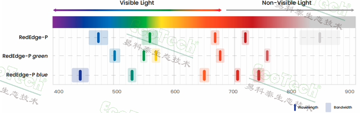 • 15波段超光譜覆蓋:融合RedEdge系列相機的光譜優(yōu)勢,實現(xiàn)最多15個多光譜波段的同步捕獲,覆蓋可見光、近紅外及關鍵紅邊區(qū)域。其獨特的海洋藍及多個紅邊波段,可快速獲取PRI、ARI、CRI等植被指數(shù),精細化分析類胡蘿卜素、花青素等植物成分,挖掘肉眼不可見的深層信息。
