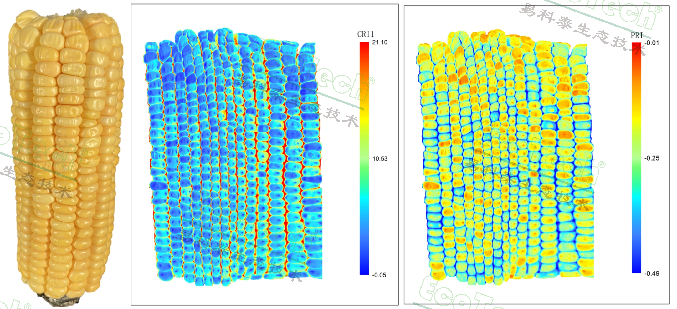 上圖為玉米籽粒側(cè)掃展開高光譜成像考種分析(易科泰光譜成像與無人機(jī)遙感技術(shù)研究中心供圖)