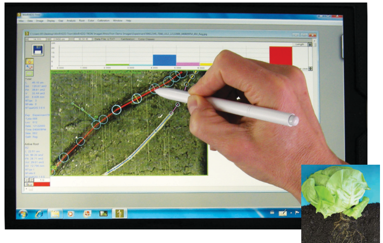 • 原位根系分析軟件:可計(jì)算獲得根長(zhǎng)、投影面積、表面積、體積等形態(tài)參數(shù),可自動(dòng)生成形態(tài)參數(shù)隨根直徑的分布圖??蓪?duì)根系進(jìn)行連接、拓?fù)浼鞍l(fā)育分析??蛇x擇同步加載、顯示和分析多張連續(xù)圖片。