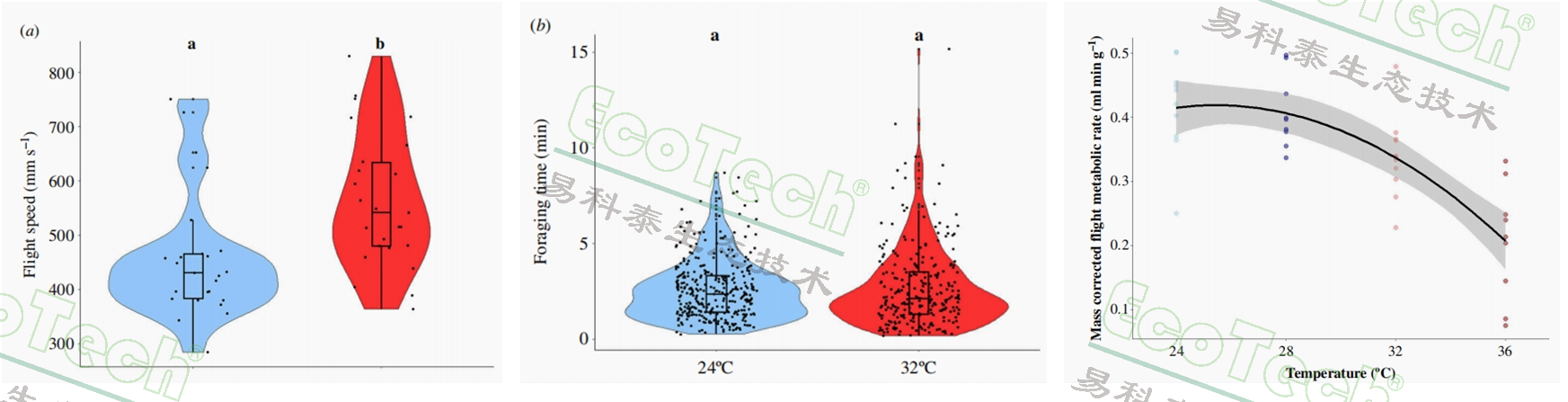 昆蟲(chóng)中傳粉者對(duì)野生植物群落和農(nóng)業(yè)生產(chǎn)力至關(guān)重要,但全球范圍內(nèi)其豐度和多樣性正下降。氣候變暖是傳粉昆蟲(chóng)的主要威脅之一,可影響昆蟲(chóng)發(fā)育、形態(tài)、代謝及行為。瑞典科學(xué)團(tuán)隊(duì)從溫度變化入手,研究氣候變暖條件下熊蜂覓食行為及代謝機(jī)制的變化。實(shí)驗(yàn)結(jié)果顯示飛行代謝率隨溫度升高而顯著降低。其中高溫下熊峰的飛行代謝率降低可能是因?yàn)榧∪忸A(yù)熱耗能減少,使熊蜂能更快飛行、更多訪花而不增加能耗;但高溫也會(huì)引發(fā)熱應(yīng)激,導(dǎo)致單蜂覓食次數(shù)減少。這種覓食行為的改變可能會(huì)破壞植物 - 傳粉者互作,雖然高溫下熊蜂訪花更頻繁,但可能因訪花時(shí)間短導(dǎo)致花粉傳遞不足;且單蜂覓食次數(shù)減少、更多工蜂參與覓食可能降低蜂群效率(如哺育),間接影響植物授粉成功率。