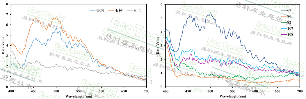 冬蟲夏草因其珍貴的藥用價(jià)值備受青睞,但也成為造假重災(zāi)區(qū)。易科泰EcoTech®實(shí)驗(yàn)室與山東農(nóng)業(yè)大學(xué)合作,利用FluorTron®系統(tǒng)對不同來源的蟲草進(jìn)行了無損檢測。研究涵蓋果洛、玉樹產(chǎn)地的野生資源、市場高低品質(zhì)野生蟲草及人工培植蟲草。結(jié)果表明,野生蟲草在460nm和503nm處呈現(xiàn)兩個(gè)特征熒光峰,熒光強(qiáng)度顯著高于人工培植蟲草;而高品質(zhì)野生蟲草(67號)的熒光強(qiáng)度又明顯高于低品質(zhì)野生蟲草(80、82號)。熒光光譜如同一枚“指紋”,讓蟲草的產(chǎn)地與品質(zhì)無處遁形。