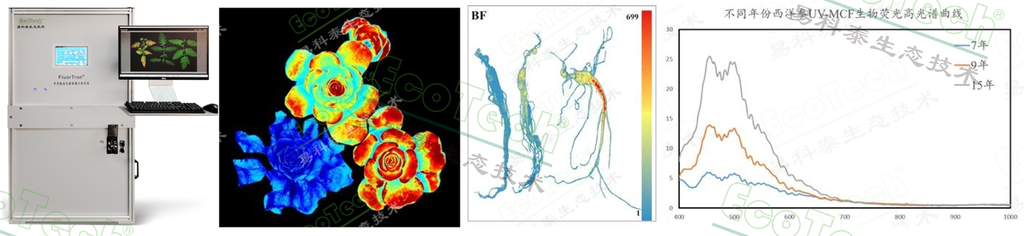 • FluorTron®多光譜熒光成像技術(shù):可同時(shí)對脅迫誘導(dǎo)次級代謝產(chǎn)物熒光和葉綠素?zé)晒膺M(jìn)行光譜成像分析,高靈敏度、高通量、非損傷、非接觸檢測植物健康狀況、生物脅迫與非生物脅迫等