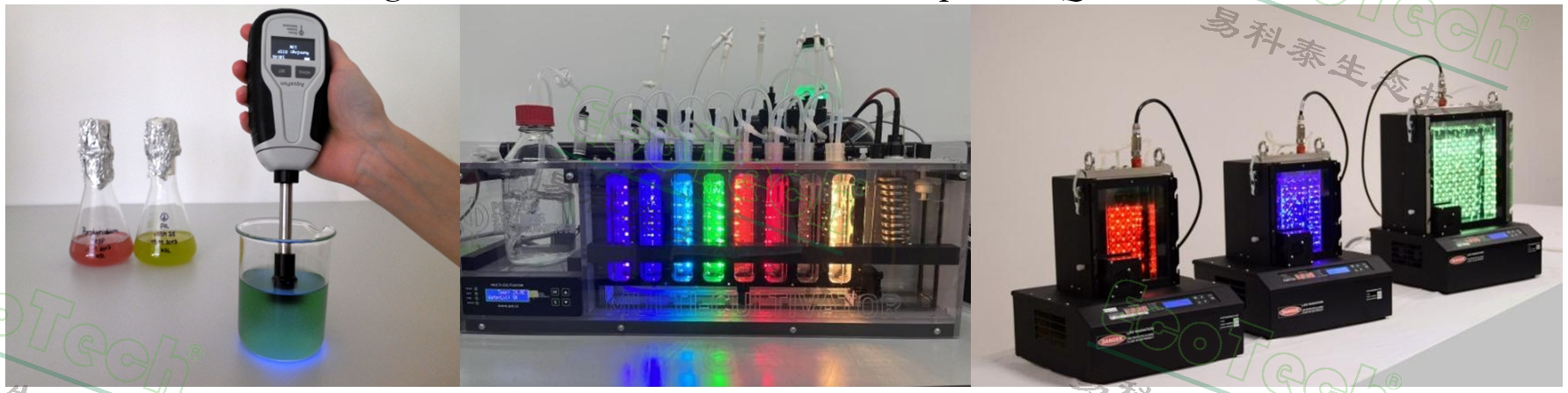 圖6 AquaPen手持式葉綠素?zé)晒鈨x、MC1000 8通道藻類培養(yǎng)與在線監(jiān)測(cè)系統(tǒng)、FMT150藻類培養(yǎng)與在線監(jiān)測(cè)系統(tǒng)