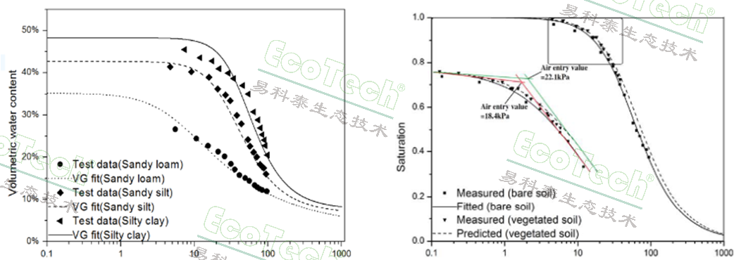 研究選取三種典型土壤(細(xì)砂壤土、砂質(zhì)粉土、粉質(zhì)黏土)與多花木蘭植物,通過(guò)控制實(shí)驗(yàn)探究基質(zhì)吸力變化。其中SoilTron®多功能小型蒸滲儀(北京易科泰提供)發(fā)揮了多參數(shù)同步監(jiān)測(cè)核心作用,包括多層剖面土壤溫度、多層剖面土壤濕度、多層剖面基質(zhì)吸力、精準(zhǔn)稱(chēng)重等個(gè)多參數(shù)的實(shí)時(shí)測(cè)量,數(shù)據(jù)采集器自動(dòng)定時(shí)記錄, 為分析植被蒸騰與土壤蒸發(fā)對(duì)基質(zhì)吸力的影響提供了高分辨率數(shù)據(jù),結(jié)果顯示,植被土壤基質(zhì)吸力較非蒸散土壤高 1.5~2.0 倍,275W/m² 光照下植被土壤 10cm 深度基質(zhì)吸力增量(10.72±0.31kPa)顯著高于 36W/m² 組(2.23±0.25kPa)。WinRHIZO根系分析系統(tǒng)(北京易科泰提供)通過(guò)圖像采集系統(tǒng)獲取根系長(zhǎng)度、直徑、表面積、體積及根尖數(shù)等形態(tài)指標(biāo),結(jié)合根系分析系統(tǒng)量化根系空間分布特征,植物根系可填充土壤孔隙,使植被土壤孔隙比從裸土的 0.558 降至 0.536,顯著提升土壤持水能力與進(jìn)氣值;且根系生物量與基質(zhì)吸力呈強(qiáng)相關(guān)性,高根系生物量樣本能維持更高基質(zhì)吸力,增強(qiáng)邊坡穩(wěn)定性。