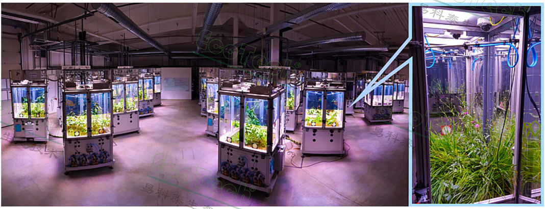 無(wú)論需要何種氣候條件,如從干燥到潮濕,從炎熱到寒冷,微風(fēng)或颶風(fēng),強(qiáng)烈光照或高濕度,地下水位高或低,都可以通過(guò)ECOTRON集成系統(tǒng)進(jìn)行模擬??刂茊卧ɡ缯彰鳌⒐喔?、空調(diào))非常易于操作和控制。通過(guò)智能設(shè)備,可以隨時(shí)隨地通過(guò)大氣單元中的攝像頭了解實(shí)驗(yàn)進(jìn)展或植物生長(zhǎng)情況。
