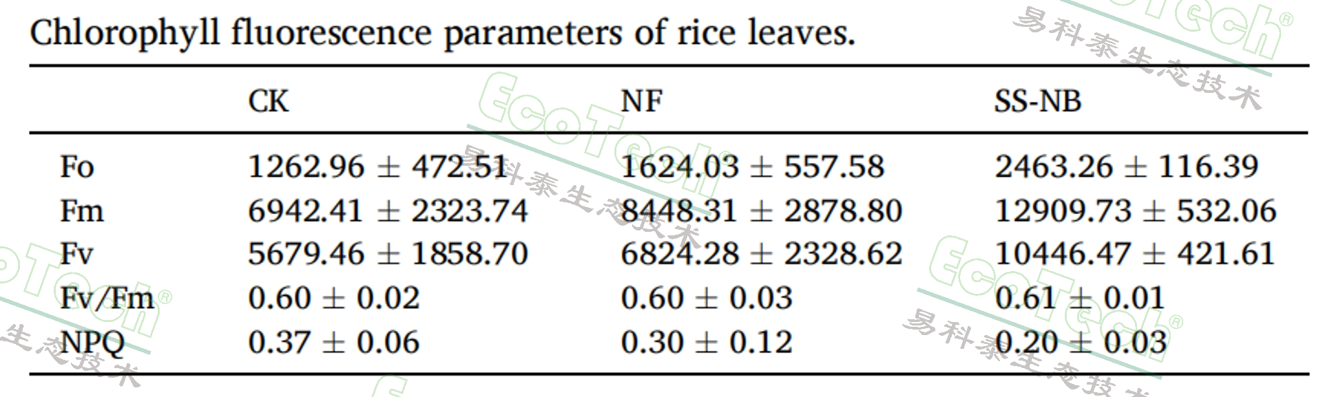 使用易科泰提供的FluorCam葉綠素?zé)晒獬上裣到y(tǒng)獲得的不同處理的水稻葉片葉綠素?zé)晒鈪?shù)
