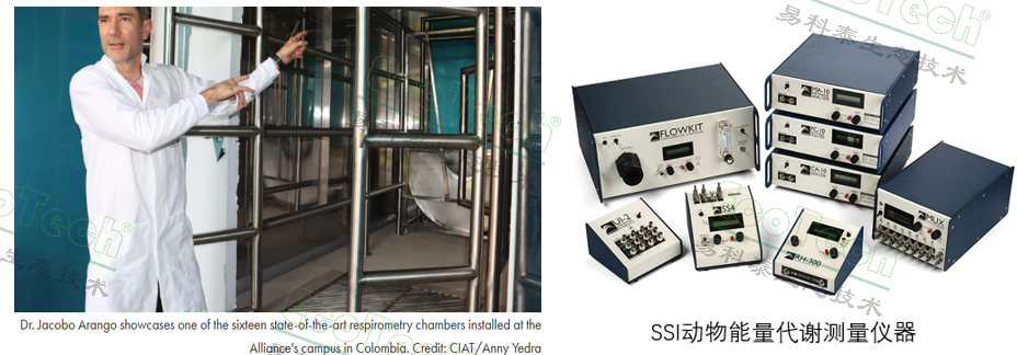 為了低甲烷飼料項(xiàng)目(Low-methane forages,LMF project,The project is evaluating thousands of forage accessions to identify natural plant compounds with anti-methanogenic properties, meaning compounds capable of reducing methane production in the animals that consume them, thereby promoting a more sustainable approach to livestock farming)——對(duì)幾千種飼草品種進(jìn)行檢測(cè)評(píng)估,以找出具備“抗甲烷產(chǎn)生”的成分,從而使家畜飼用甲烷排放低的飼料。 2024年底國(guó)際農(nóng)業(yè)研究聯(lián)盟(Alliance Bioversity-CIAT)在拉丁美洲哥倫比亞帕爾米拉校區(qū)啟用了16通道牲畜能量代謝測(cè)量室(8個(gè)用于綿羊,8個(gè)用于牛,https://alliancebioversityciat.org/stories/measuring-livestocks-methane-emissions-minimal-disturbance-maximum-ease),并搭配了世界最先進(jìn)的SSI動(dòng)物能量代謝測(cè)量?jī)x器(詳情請(qǐng)咨詢北京易科泰生態(tài)技術(shù)有限公司),可以精確監(jiān)測(cè)來(lái)自不同飲食選擇的氣體濃度,同時(shí)其氣密和受控的環(huán)境保持恒定的溫度、濕度和氣流,以高動(dòng)物福利監(jiān)督標(biāo)準(zhǔn)模擬未來(lái)牲畜飼養(yǎng)規(guī)模研究的真實(shí)條件。