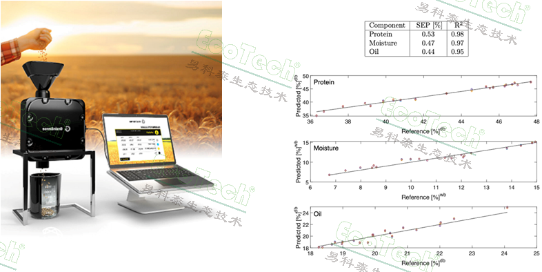 右圖:大豆蛋白質(zhì)、水分、脂肪含量預(yù)測(cè)值與真實(shí)值比對(duì)